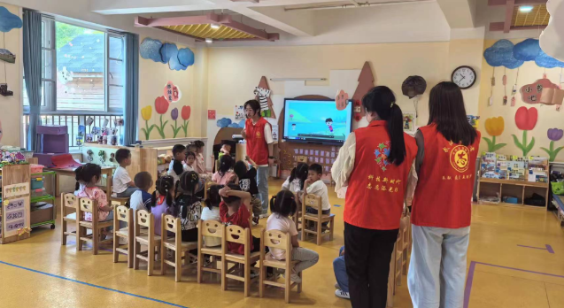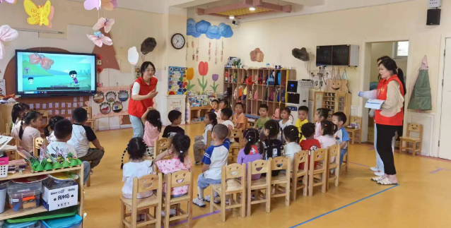 志愿者们通过情景动画播放、趣味游戏问答等形式调动小朋友们的积极性,向大家详细讲解了防溺水注意事项,提醒大家不要私自下水游泳。并拿出《防溺水安全教育》知识宣传资料,向小朋友们讲解防溺水“六不准”,防范溺水事故发生。如果碰到其他小朋友有危险的玩水行为时,要及时制止,并让大家学习遇到同伴溺水时,要大声呼救,主动寻求成年人的帮助。