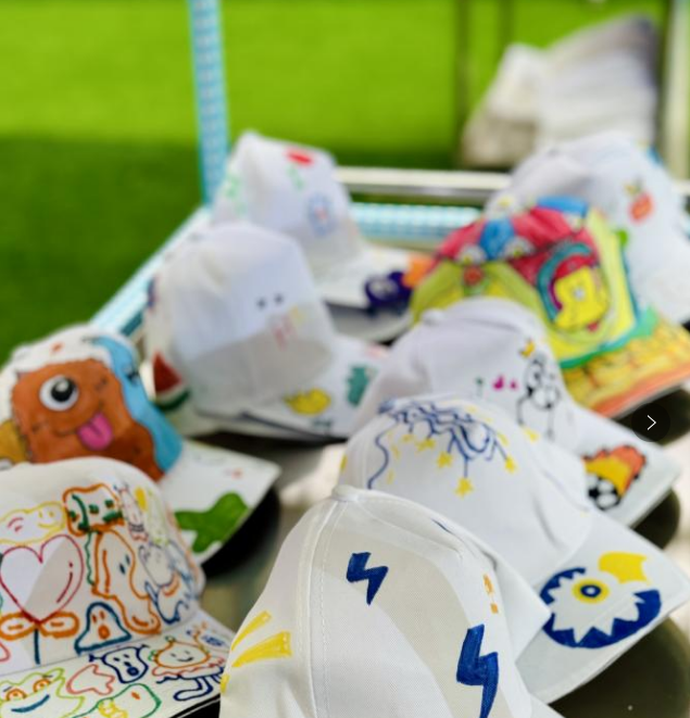 活动现场,小朋友们与家长们携手合作,发挥无尽的想象力,用废弃的T恤、帽子等物品作为画布,以画笔为媒介,将自己的游戏故事、奇思妙想跃然纸上。每一件作品都凝聚了孩子们的童真与家长的智慧,使得这些曾经被遗弃的废旧衣物焕发出全新的生机与魅力。
