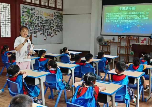 茫茫宇宙,浩瀚星空,星星为什么会眨眼?宇宙大爆炸?为什么探空火箭的头是尖的?老师用富有童趣的语言为大家讲解了天文知识,并利用神话故事和拟人化形象描述了太阳系八大行星的特点、天文符号以及名字的由来等,通过动手又动脑得“浪漫的星座”小游戏,为孩子们开启了神奇的“太空之旅”。