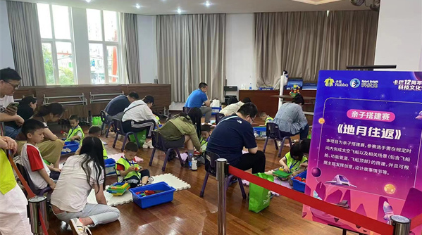 本次活动还特别设置“未来太空家园”“探测机器人”“太空运输车”等航天主题板块,并配有相应的知识竞赛环节,参赛青少年利用学习到的知识和平时的日常积累,认真听题、努力抢答,现场气氛热烈,在思维的碰撞中加深青少年们对天文知识的认知。