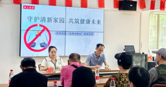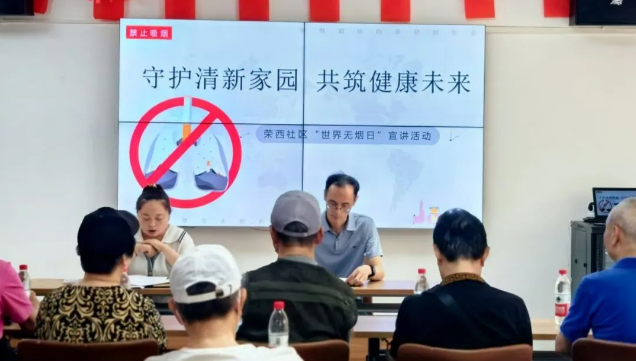 在这绿意盎然、万物生长的五月里,我们迎来了关注健康、呼吁戒烟的“世界无烟日”,为进一步加强控烟科普宣传,减少烟草危害,提升广大居民群众健康素养水平,5月30日,荣西社区紧扣时代脉搏、契合时代主题,开展了以“守护清新家园,共筑健康未来”为主题的科普宣讲活动,旨在深化广大居民对控烟重要性的认识,倡导文明、健康、绿色的生活方式,共同缔造一个健康宜居、和谐共融的生活空间。