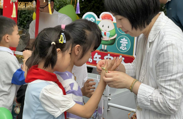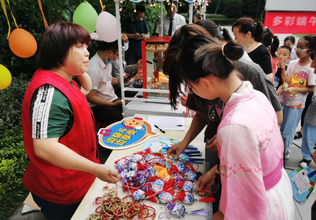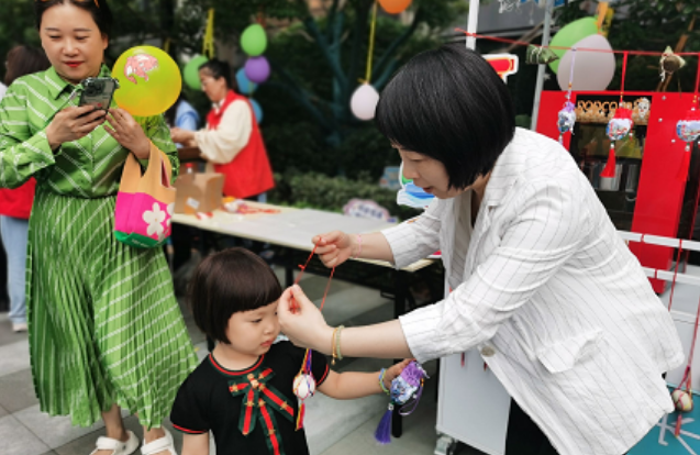 在中国传统文化中,青、红、黑、黄五种颜色被视为吉祥色,佩戴五彩手绳作为端午节的传统民俗之一,在此次活动中得到了生动展现。居民们互相系上五彩手绳,传递着彼此间的祝福和美好愿望,不仅体现了传统文化的魅力,更让居民们感受到了传统文化的深厚底蕴。