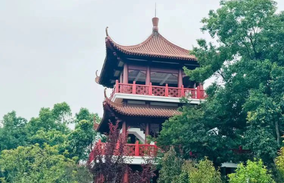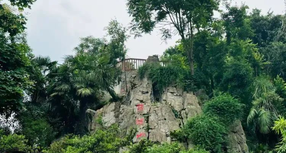 到达矶头山公园,孩子们都很兴奋,对于这座紧临自己生活多年的小山充满了好奇。在大门左手边,一典雅古朴的屋舍,惬意地静卧林间,白墙红瓦,名曰“云居”,让人不禁心生遐想。缘梯而上,山体上“矶头山”几个大字,赫然映入眼帘。小山蓊蓊郁郁,果然不负青山盛名。登上山顶,见一亭翼然而立,名曰“邻鹤楼”,取与黄鹤楼比邻而居之意。讲解员管老师在邻鹤楼下给科普团成员们讲解了青山的起源与发展。