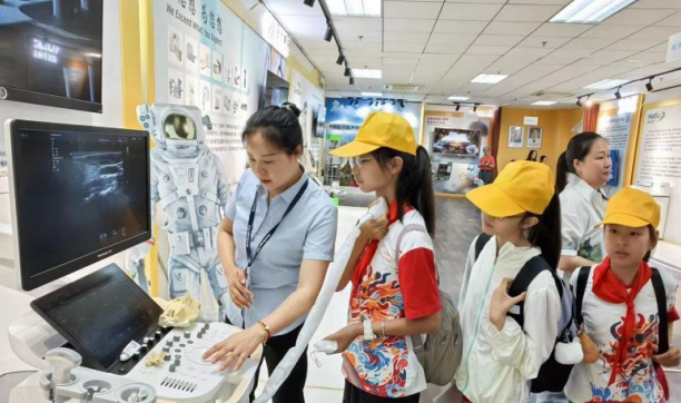 5月31日,武昌区杨园街道四美社区、电信社区携手武昌区市场监管局开展“数往知来 ‘心’益求新”活动,带领四美塘小学的40余名师生前往湖北省药品监督管理局器械院的中国医用超声科普培训教育基地和中国生物材料学会科普教育基地参观学习。
