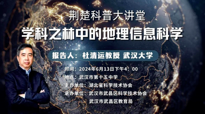 6月13日,由湖北省科学技术协会主办,武汉市武昌区科学技术协会、武汉市武昌区教育局承办的年“荆楚科普大讲堂”进校园活动走进武汉市第十五中学。本次活动邀请了武汉大学教授、博士生导师、珞珈杰出学者杜清运教授,给学校师生们带来了主题为“学科之林中的地理信息科学”的专题讲座。