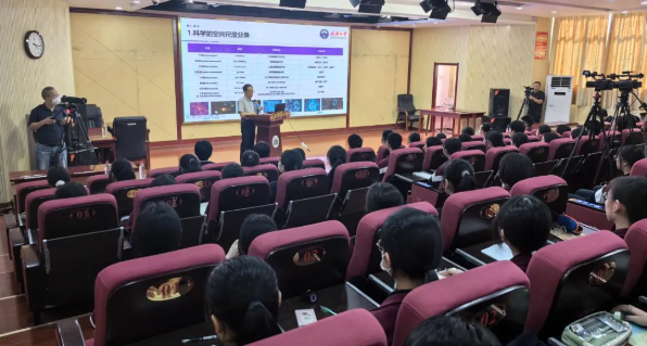 随后,杜教授对地理信息科学的特点、应用等方面进行了相关的梳理,强调通过地理学的数据,利用地理信息科学、遥感和数学建模的方法来研究我们的客观世界,帮助我们发现更多的规律,并对地理学的三大规律展开细致讲解。