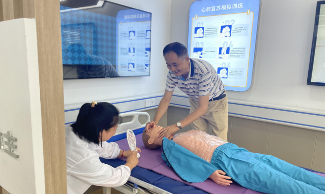 随后,在科普老师的带领下,大家有序参观了社区二楼的居家应急安全科普馆,场馆分为居家安全体验、火场逃生、电瓶车充电规范、厨房安全体验、自然灾害体验、消防安全展示、急救体验、海姆立克演示等;活动中科普老师现场演示了心肺复苏急救法、海姆立克急救法,为加深理解,老师在现场组织居民们进行了心肺复苏模拟等演练,让大家在实践操作中切实掌握急救的技能。
