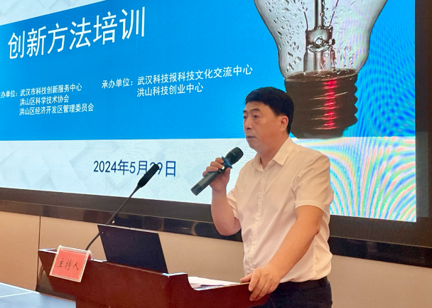 5月29日下午,洪山区科协联合武汉市科技创新服务中心、洪山区经济开发区管理委员会组织洪山区各企业科技工作者开展创新方法培训,将科创服务搬进科技园区。培训主题为《TRIZ创新方法概述以及生产管理中的应用案例》,由湖北工业大学机械工程学院教授邓援超主讲。