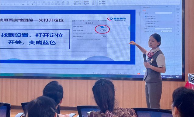 课堂上,志愿者用通俗易懂的语言,教现场居民认识智能手机、了解智能手机的基本功能。志愿者重点围绕如何使用常用手机APP,用现场分步骤演示的方法,对美食攻略、便利出行、生活娱乐、智能居家等方面的APP展开讲解,并运用情景模拟,利用“面对面”实操互动练习,进一步加深居民们的印象,帮助解决“智能时代”中老年人遇到的日常难题。