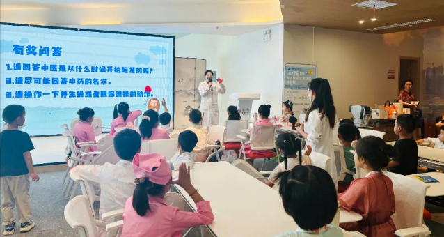 活动当天,小朋友们身着传统汉服和小小医生制服,在家长的温馨陪伴下,兴致勃勃地踏入这场中医文化的奇妙之旅。“小朋友们有没有看过中医呀?”来自新沟桥儿童医院的医师通过提问的方式吸引了在场小朋友的注意,向小朋友们讲述了中医文化的悠久历史与起源,激发了孩子们对传统文化的浓厚兴趣。