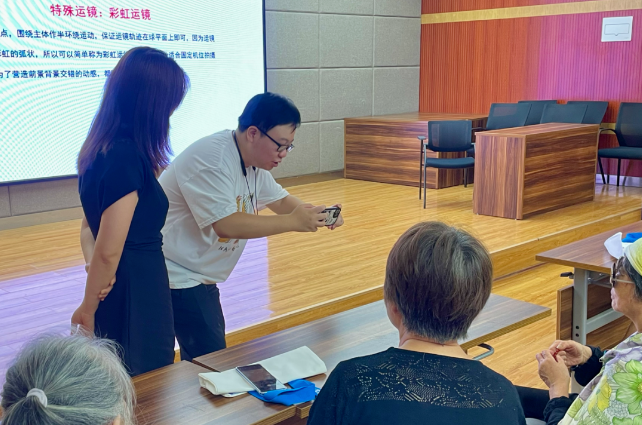 为了让居民们更加深入地了解短视频制作,活动还特别设置了实践操作环节。居民们在老师的指导下,纷纷拿起手机,尝试在教室现场拍摄自己的短视频作品。在这个过程中,居民们不仅学会了拍摄技巧,还感受到了创作的乐趣和成就感。