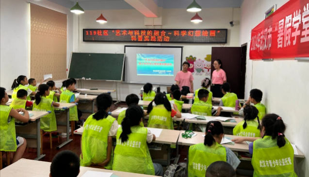 2024年7月12日下午,钢花街道119社区携手青山区科协,开展了以“艺术与科技的融合——科学幻想绘画”为主题的科普实践活动,作为“好玩在青山 科普乐假期”系列活动的璀璨亮点之一,此次活动不仅点亮了孩子们的创意火花,更为社区文化注入了新的活力。