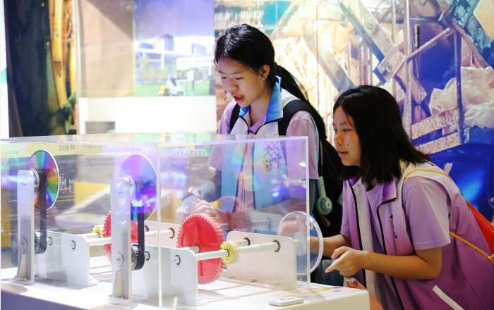 经过四天的朝夕相处,武汉美加外语学校的李美璇和她的法国舍友Elisa(埃莉萨)已经结下了深厚的友谊,李美璇说:“语言不同并不能阻碍我们之间的交流,绘画、音乐、共同的兴趣爱好都让我们拥有无数的共同话题,我们也会彼此分享爱看的漫画。这次的研学旅程我们体验了很多不一样的传统文化,包括今天来到武汉科技馆,在讲解老师的带领下体验到了宇宙的浩荡、数学的神秘、自然规律的奇妙,让我和我们的法国小伙伴都能大开眼界学习新的知识,我们都认为非常有意义。”