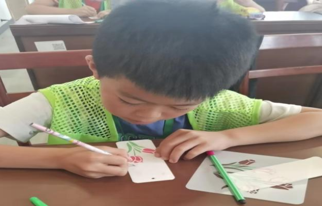 理论学习之后,是孩子们期待已久的动手环节。在工作人员的指导下,孩子们纷纷拿起彩笔和书签,开始制作属于自己的二十四节气书签。有的孩子选择了春雨绵绵的清明,用细腻的笔触描绘出嫩绿的柳丝和绽放的花朵;有的孩子则钟情于银装素裹的大雪,用白色和蓝色的颜料勾勒出冬日的静谧与纯洁。每一枚书签都凝聚了孩子们对节气的理解与想象,也见证了他们对传统文化的热爱与传承。