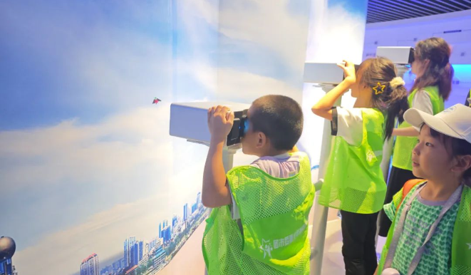 在节水科普知识馆中,通过讲解员的介绍,青少年们依次聆听了“水的起源”“水孕育文明”“生命的年轮”等内容,并通过模拟器亲身感知水的各种形态,在这里他们收获了欢声笑语,更在亲身体验中领悟到了节水的重要性。通过第二期场馆内的模型演示、实物展示、立体影像技术等全方位的场景展示,让孩子们在雨水处理、中水回用、中水洗车等项目中探索用水奥秘,掌握节水妙招。