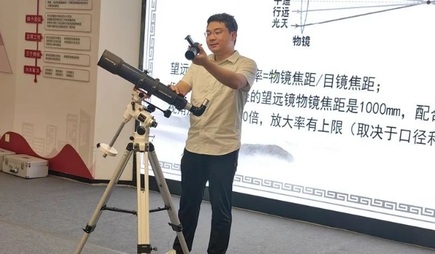 活动最后设置了现场体验环节,大家有机会亲手操作小型望远镜。毛教授一边调整参数,一边讲解望远镜的基本光学指标和使用技巧。学生们兴致满满,一个个排好队,从望远镜中看到远处清晰的画面,不时爆发出热烈的欢呼和感叹。