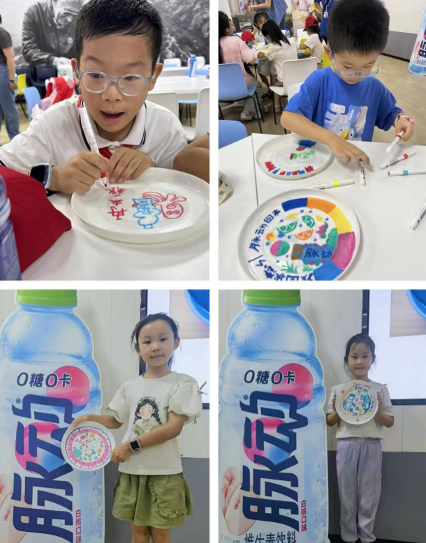 最后,工作人员为大家分发手绘飞盘,小朋友们充分发挥想象,将今天一天的所见、所得用彩笔描绘在白色的飞盘上,形成一幅幅充满创意的艺术品。