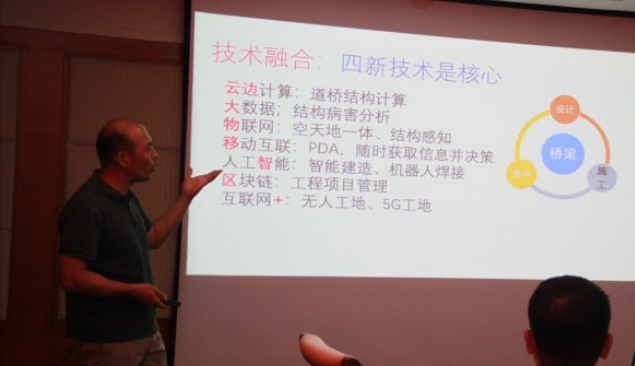 胡志坚教授作了题名为《常规桥梁结构创新与智能建造》的专业学术交流,胡教授从国内外桥梁造价与服役寿命对比分析着手,引出了自主创新的重要性。并就桥梁新材料ECP与UHPC、大跨度PC连续梁/刚构桥、在役常规桥梁改扩建与加固等技术创新以及常规桥梁智能建造等多个方面提出了独到的见解。