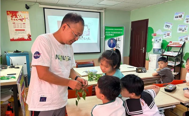 同时,为了让大家更直观地感受不同植物的特性,杜教授特意带来了多株植物样本,通过现场展示和生动有趣的讲解,揭开饭桌上常见植物的神秘面纱。现场氛围热烈,孩子们踊跃发言,并主动凑近观察、触摸植物实体,去感受它们的形态和质地。讲座最后,杜教授深情寄语:“孩子们应该走出课本,对身边的植物多一些观察和思考,多去感受自然、亲近自然,自然会给你们很多不一样的惊喜。”