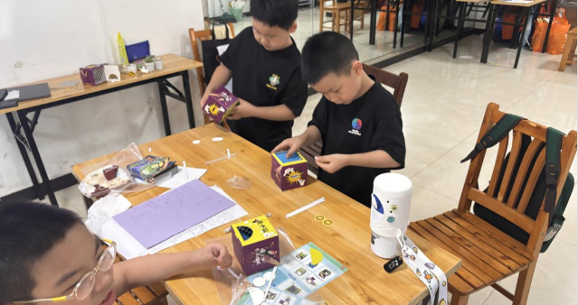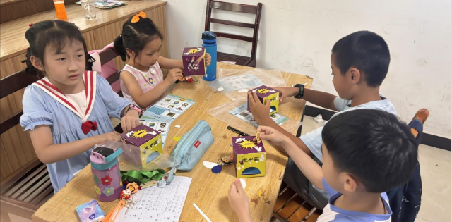 李老师和小助手为孩子们分发了制作魔法存钱罐的材料包,引导他们亲自动手,体验科学与魔术的结合。在动手实践的过程中,孩子们不仅锻炼了动手能力,更在交流与合作中提升了自身的科学素养。他们互帮互助,热烈讨论,共同完成了魔法存钱罐的制作。