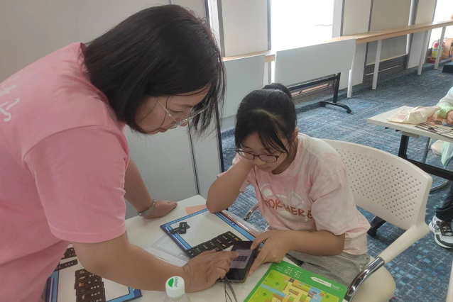 在好时代科普基地刘琼老师的引领下,一群小小科技迷们穿越时空隧道,踏入了神秘的元宇宙世界。编程,这个曾经看似遥远而复杂的领域,在刘老师的巧手下变得生动有趣。孩子们化身为勇敢的情报特工,肩负着破坏敌方交通、收集情报并安全返回联络亭的重要使命。编程模板与模块的巧妙结合,让孩子们在动手操作中体验到了编程的无限创意与乐趣。他们或眉头紧锁,认真分析地图;或兴奋不已,分享着各自的闯关方案。当“老师,我闯关成功了!”的声音此起彼伏时,那份成就感与喜悦溢于言表。