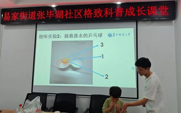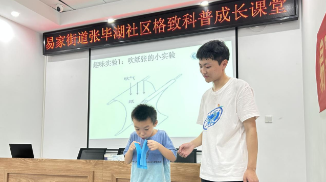“哇!好神奇啊!”“老师,这个怎么做到的呀?”8月19日,易家街道张毕湖社区暑期托管班上演了一场精彩的科普实验秀,来自华中师范大学物理科学与技术学院的大学生志愿者们将枯燥的科学知识转化为一个个有趣的实验与孩子们分享,通过生动有趣的互动方式,让孩子们了解这些实验现象背后的科学知识,近距离感受科学的魅力,激发他们对科学的兴趣与好奇心。