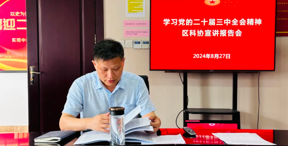 8月27日,学习贯彻党的二十届三中全会精神区委宣讲团在区科协开展宣讲,区委宣讲团成员、区科协主席陈文胜作宣讲报告。