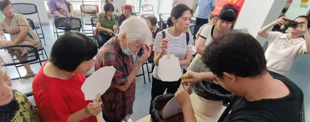 活动于上午9:30开始,邀请居民25人参与,由综交院张老师为大家科普宣讲《武汉交通发展史》,通过张老师细致地描述武汉交通发展的历史,我们了解到在没有长江大桥的年代,在大武汉还不是大武汉的时候,武汉人交通全靠走,过江靠轮渡,运输靠码头,自从“一桥飞架南北,天堑变通途”,武汉的交通就不再局限于三镇,而在两岸。居民也了解到武汉一些重要道路建成的时间和历史,如长江大桥是1957年建成、1995年武汉天河机场机场正式通航启用、2004年武汉有了自己的第一条轨道交通1号线等。未来交通的发展也在改变我们的生活,如现在无人机送外卖、无人驾驶出租车,科技在发展为我们生活带来便利。讲座结束后科普志愿者为居民分发漆扇材料,并向居民讲解漆扇的制作过程及色彩的搭配,鼓励居民自己动手搭配颜料制作,70多岁的孙阿姨主动上台示范,将自己喜欢的颜料大漆滴入水中,通过晃动、旋转、提起等手法,一面好看的漆扇展示在大家面前,带动了现场的热情,居民们都踊跃参与,在最后合影环节展示属于自己的那面独特的漆扇。