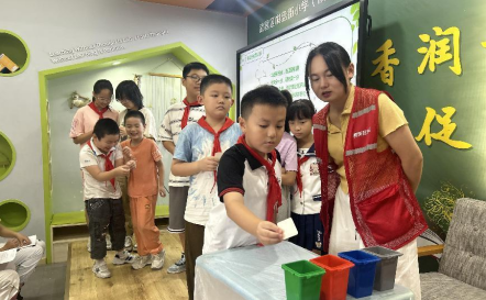 与此同时,美好社工通过图文并茂的PPT展示和互动问答,向学生们讲解垃圾分类的重要性、基本原则及具体分类方法。一个个“变废为宝”的小故事,大家听得津津有味,纷纷表示要将所学知识应用到日常生活中去。随后,邀请学生们依次上台参与“垃圾分类大挑战”互动游戏,将手中印有垃圾图案的小卡片放入相对应的垃圾桶中,通过实践操作加深对垃圾分类知识的理解与记忆。现场笑声与掌声不断,孩子们在游戏中学习,在学习中成长,体验到了垃圾分类的乐趣与意义。