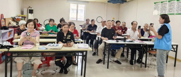 此次活动为老年人量身定制,由福满家老年人服务中心工作人员进行“面对面、手把手”实操互动型教学,为老年人演示微信加好友、微信视频、发朋友圈、美团买药、定位、缴付医保等功能。