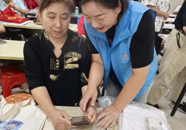 “我朋友圈有一个人总是发一些没用的东西,我不想看他,应该怎么办?”、“先把这个视频收藏,然后点哪里来着,你能再给我演示一遍么?”……老人纷纷提出日常生活中困扰自己的手机使用问题,志愿者们“一对一”地进行指导,逐个步骤反复讲解,贴心地为老年居民们答疑解惑,直到他们完全掌握操作步骤。“我儿子最近刚给我换了一个智能手机,我正发愁怎么用呢,社区这个活动办得太及时了,解决刚需,带动我们老年人与时俱进,让我们也跟上了潮流。”刚学会发朋友圈的张奶奶笑着说道。