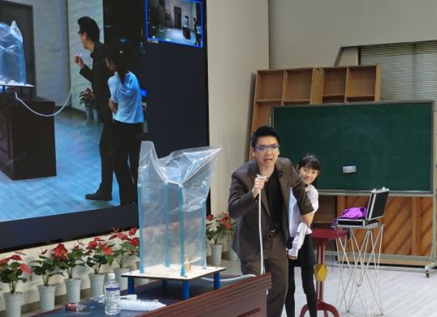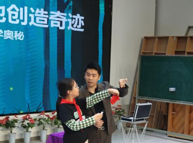 活动开始,“是科学还是魔法”科普秀便以一连串生动有趣的互动问答,瞬间点燃了全场学生的热情。文豪老师以独特的方式将深奥的科学知识与迷人的魔术表演无缝融合,引导学生们深入思考日常生活中那些习以为常现象背后的科学原理。在欢声笑语中,孩子们不仅收获了知识,更体会到了探索未知世界的无穷乐趣。