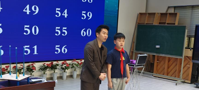 在“探索超能力”环节,文豪老师以“数字读心术”为引子,展开了一场惊心动魄的魔术表演。孩子们的目光紧紧追随每一个细微的动作,试图揭开这背后的秘密。随着魔术的层层递进,文豪老师逐一揭示了其背后的数学奥秘——二进制原理,让孩子们恍然大悟,原来“读心术”的魔力源自科学的智慧。这一转变不仅让孩子们从被动的观赏者成为了主动的探究者,更激发了他们对科学原理的浓厚兴趣。