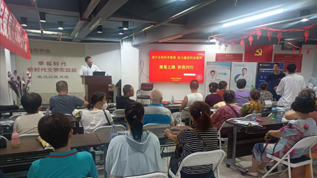 为了普及康复理疗知识,提升社区居民的自我康复理疗意识,同时让居民在家门口就能享受到专业的康复理疗服务。9月20日上午,百步亭社区幸福时代居委会联合武汉市八医院康复理疗科主任医师张伟及其团队在居委会二楼活动室开展了以“提升全民科学素质 协力建设科技强国”为主题的康复理疗科普讲座义诊活动,苑区60余位居民参加了此次活动。
