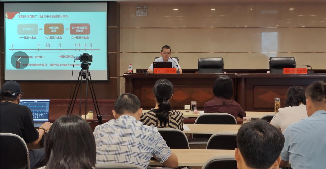 沈传波教授紧紧围绕习近平总书记在党的二十届三中全会上的重要讲话精神和全会《决定》,从深刻认识党的十二届三中全会的重大意义、深刻领会和把握进一步全面深化改革的主题、深刻领会和把握进一步全面深化改革的重大原则、深刻领会和把握进一步全面深化改革的重大举措等多个具体方面,对全会精神进行了系统阐述,并结合习总书记对科技创新的要求对科技教育人才体制机制一体改革作了深入讲解。